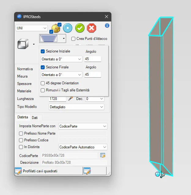 I profilati vengono inseriti con dimensioni reali e parametriche, garantendo la correttezza delle misure.