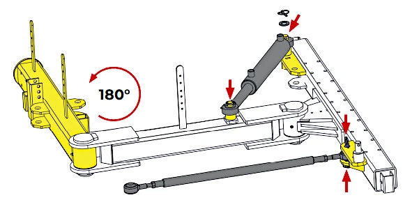 L’immagine mostra un’istruzione di assemblaggio per la modifica della posizione della spazzola in una macchina progettata da Broddson AB in IronCAD.