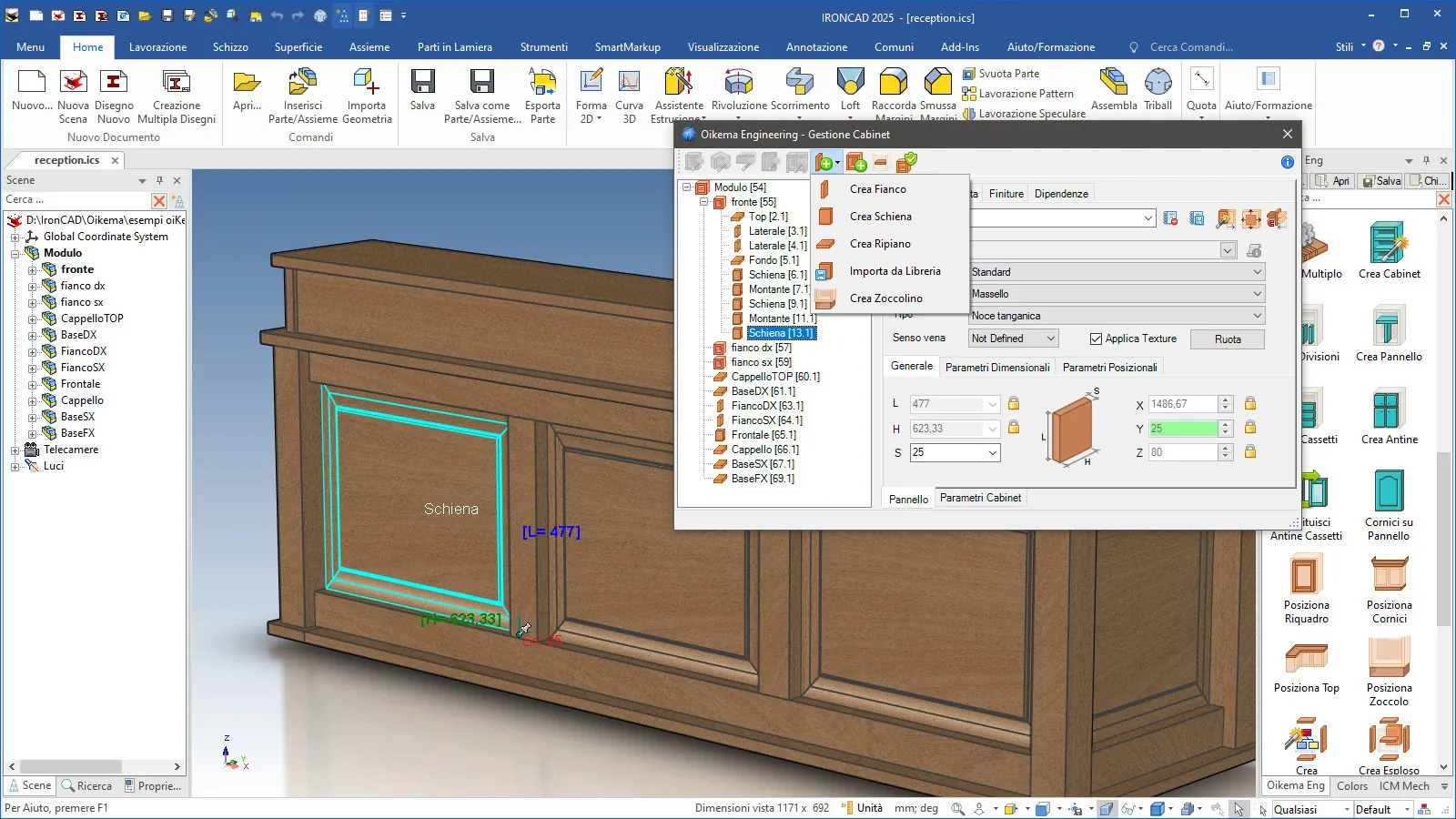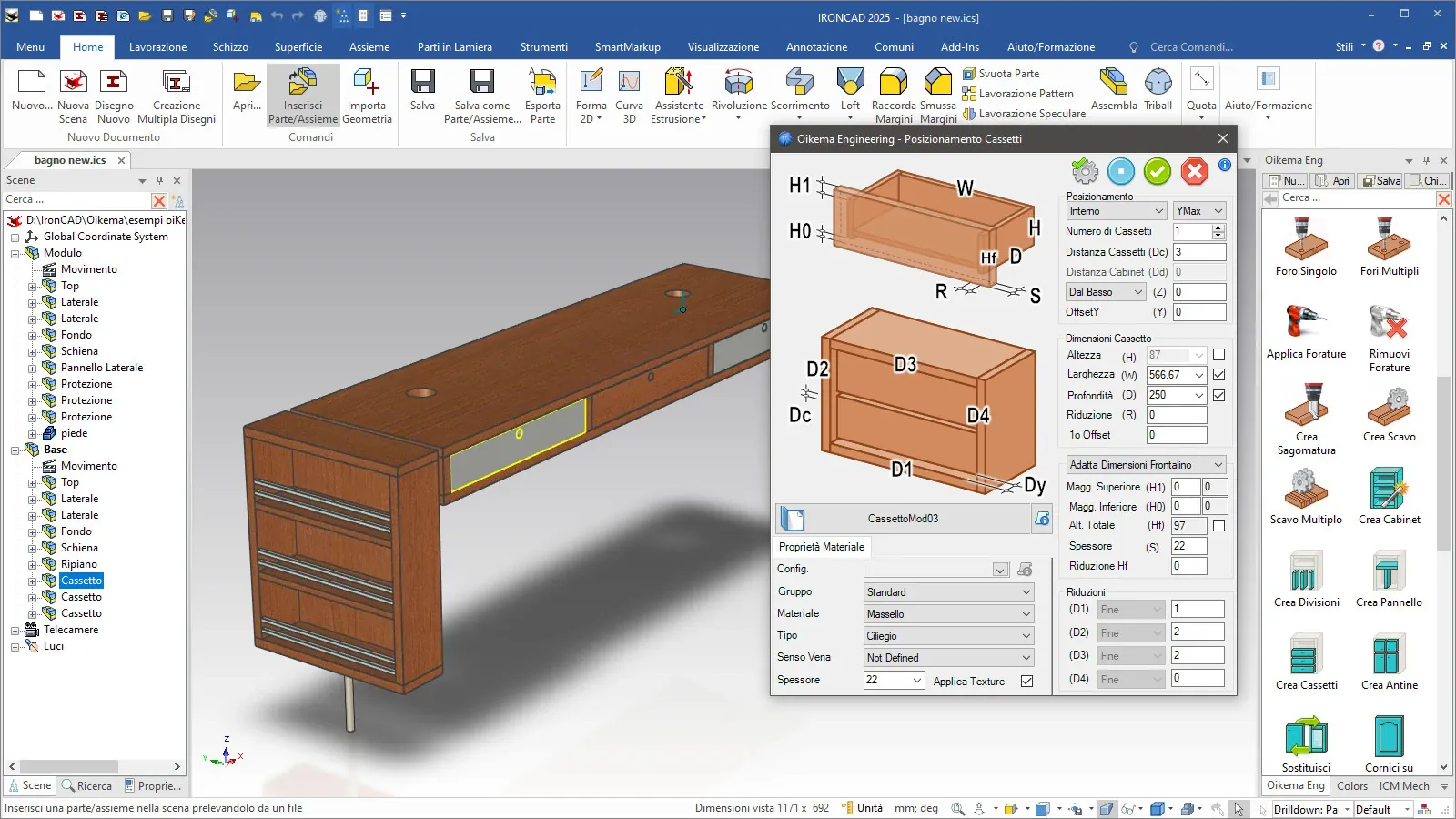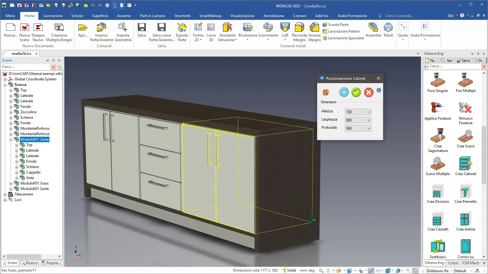 Oikema espande la potenza e la semplicità di IronCAD aggiungendo strumenti parametrici e funzioni tipiche della progettazione d’arredo: