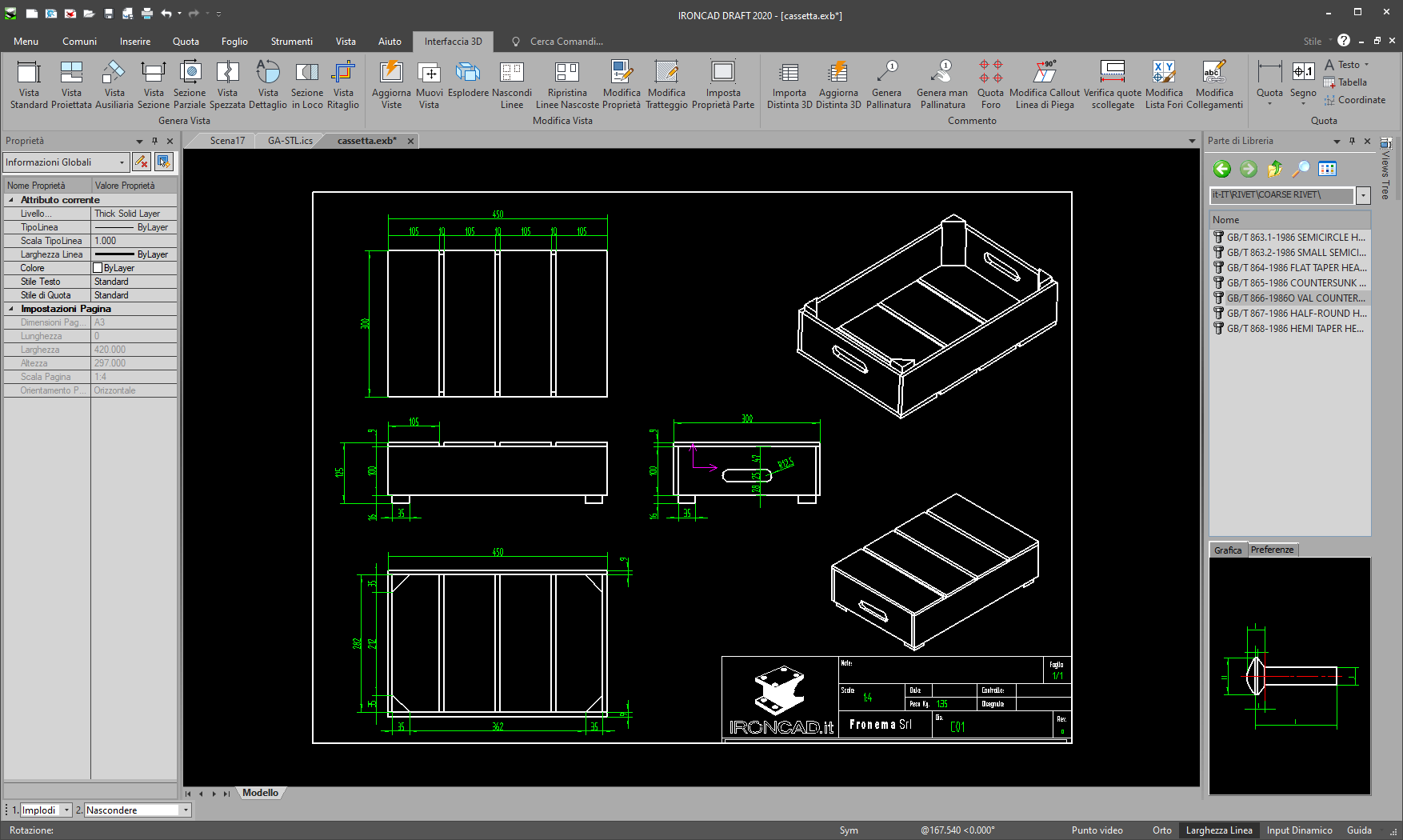 Oggi c’è un’altra opzione, IronCAD Draft I disegnatori, normalmente preferiscono la capacità di controllo 2D e la cura artigianale sia dei disegni, sia dei dettagli, per comunicare in modo chiaro ed efficiente il loro lavoro. Per questi utenti, la redazione di tavole 2D è una forma d’arte, non soltanto una serie di linee su un pezzo di carta. Mentre per alcuni progettisti, l’evoluzione della modellazione 3D ha reso più facile la progettazione dei prodotti, per molti altri il lavoro in 3D non è una necessità, ma è utile.