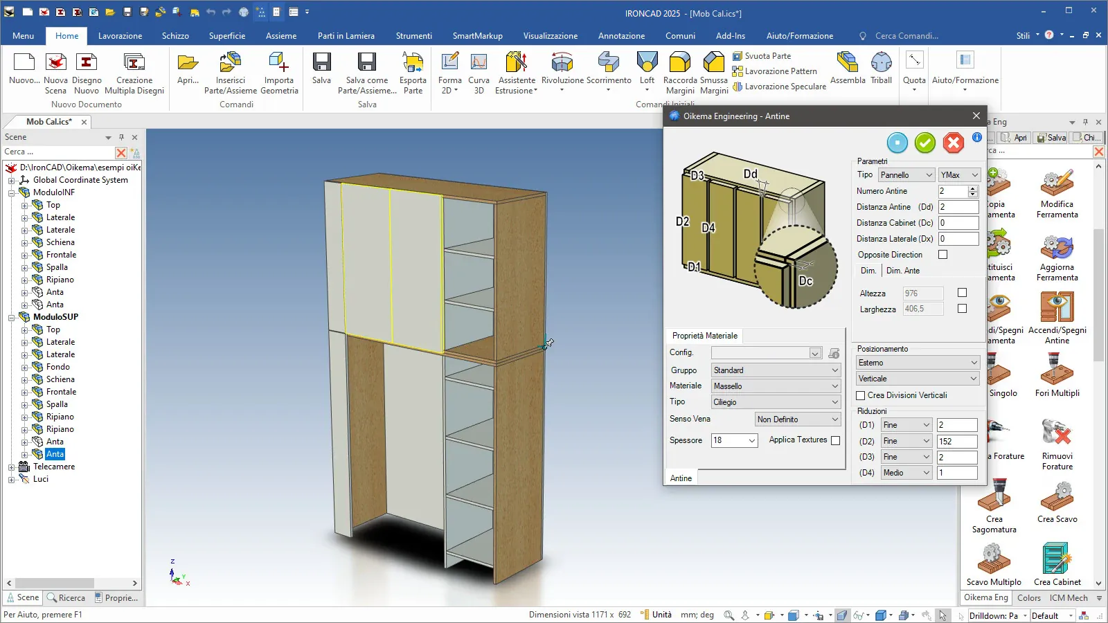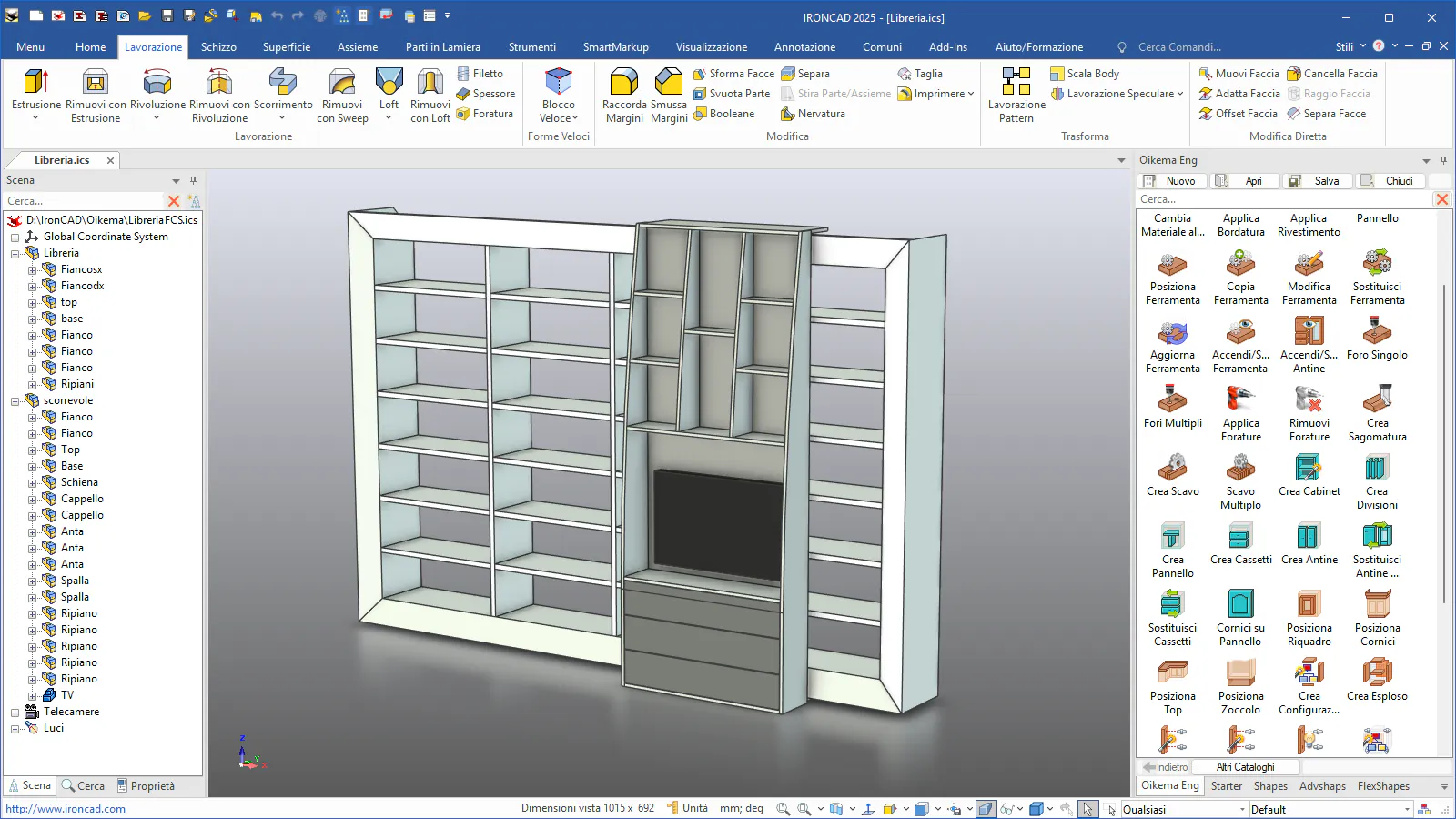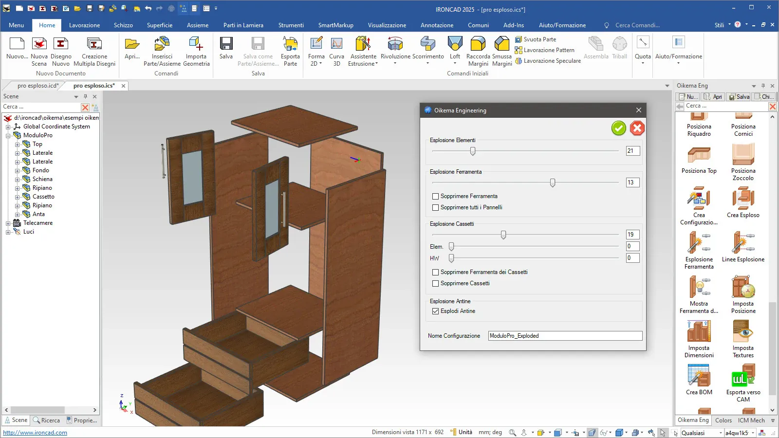 Oikema espande la potenza e la semplicità di IronCAD aggiungendo strumenti parametrici e funzioni tipiche della progettazione d’arredo: