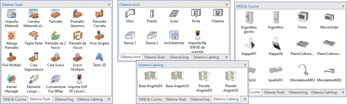 Il catalogo Oikema Arch include strumenti per creare rapidamente elementi architettonici utili a contestualizzare i modelli d’arredo: