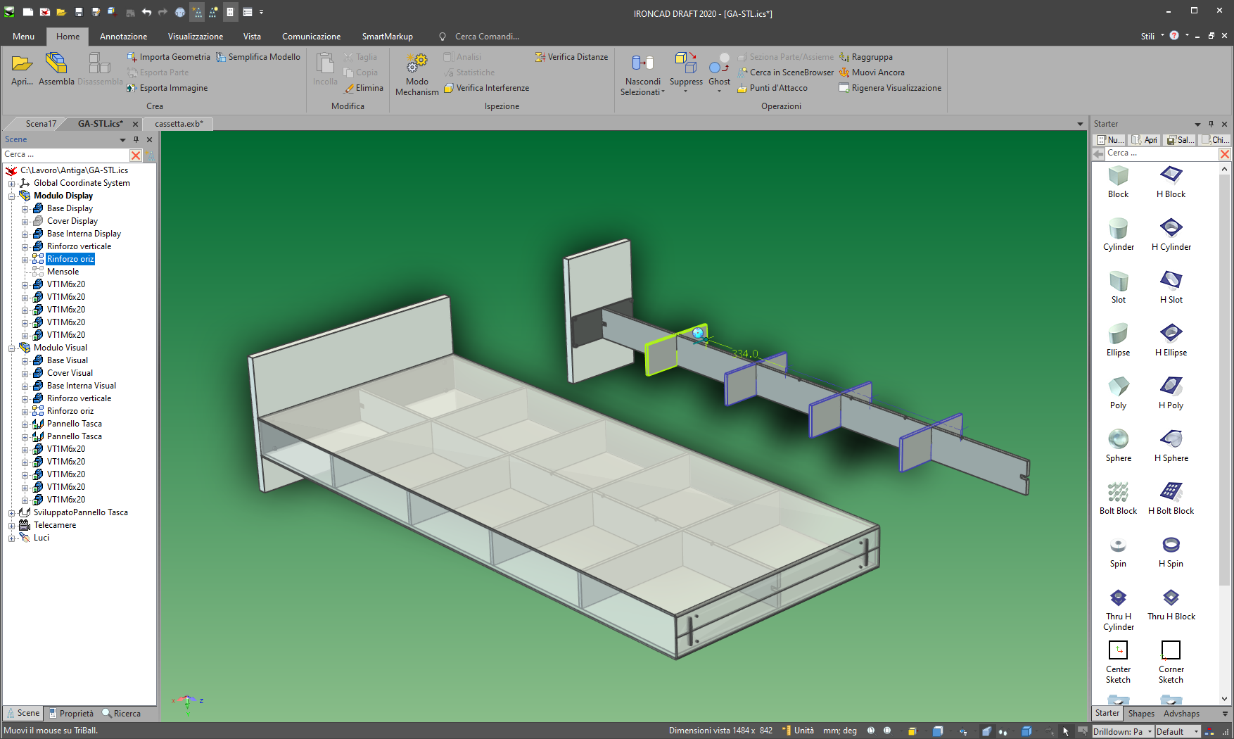 Divesi modelli possono essere importati per costruire assiemi, verificare interferenze, generare rappresentazioni con rendering realistici e animazioni 3D. Costruire in modo rapido i propri componenti e salvarli in un catalogo personalizzato, permettendo poi di riutilizzarli velocemente per generare rapidamente nuovi progetti da sottoporre ai vostri clienti.