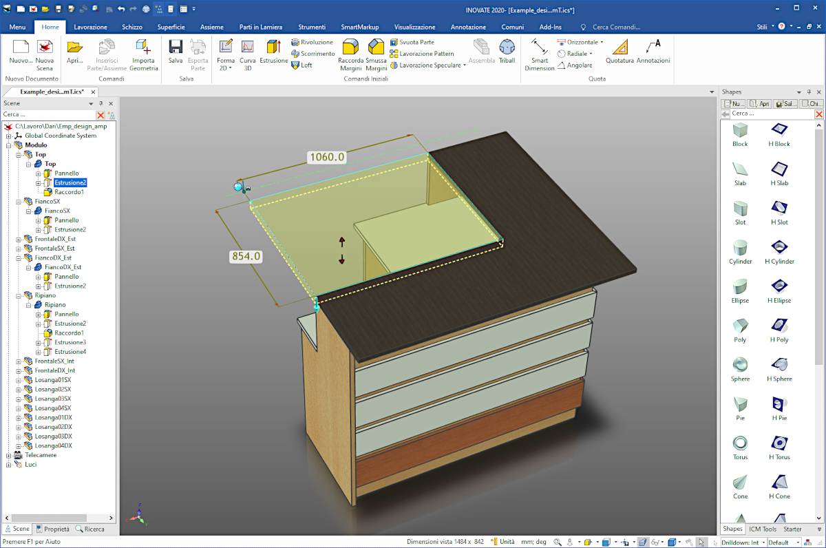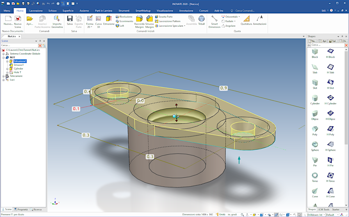 Inovate è un modellatore solido 3D incredibilmente facile da usare. Le potenzialità di Inovate rendono estremamente semplici e veloci le fasi di creazione, studio, modifica, e conversione di modelli 3D.